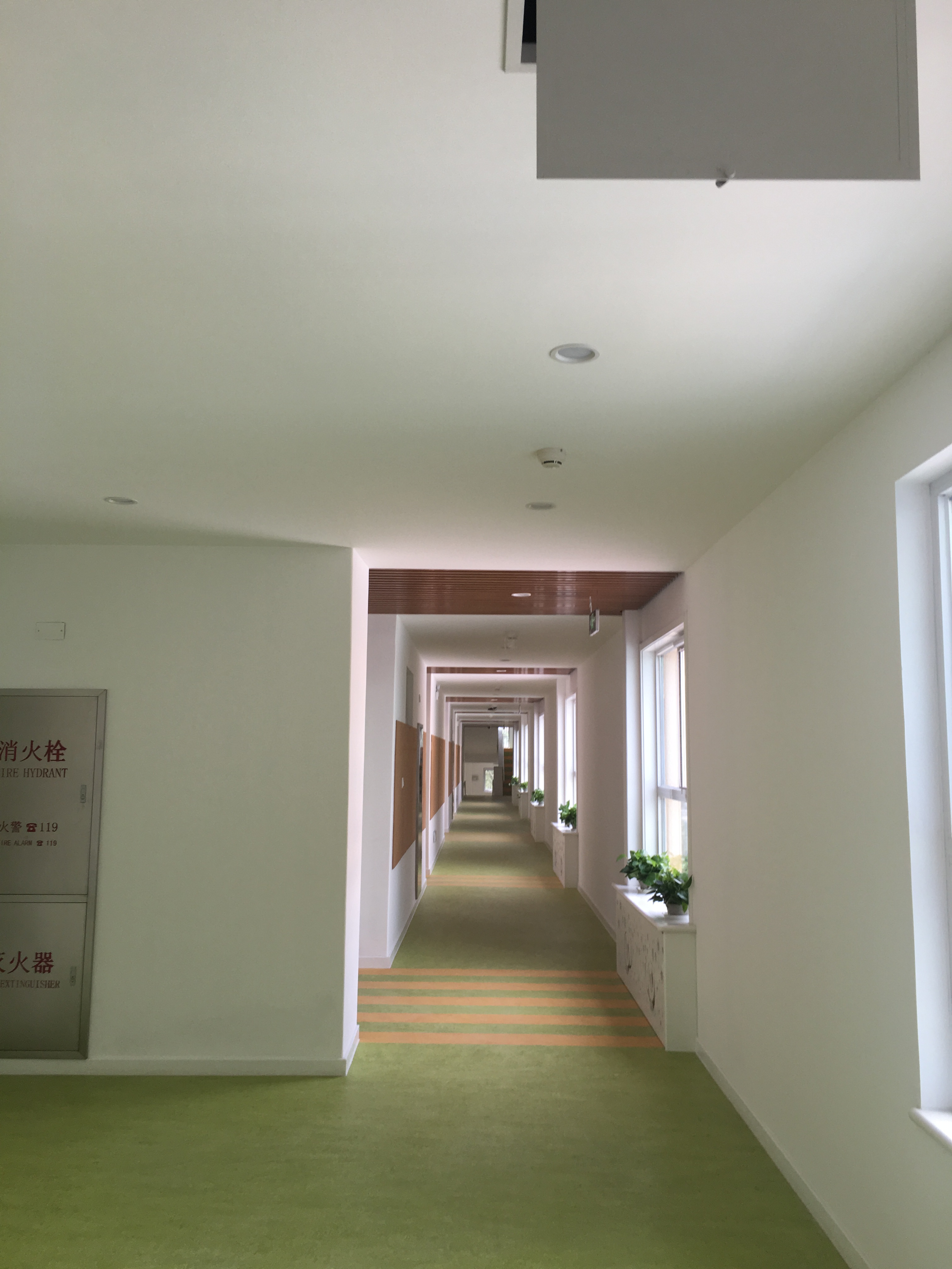 北京師范大學實驗幼兒園中每個教室和走廊采用了有源吸頂揚聲器平均分布的安裝方式,負責全場區域的聲音覆蓋,吸頂揚聲器可以很好的對聽音區實現覆蓋,通過處理器內均衡、延時、壓限等功能的設置,可以將聲場調試至最佳狀態,使音箱的頻響達到極佳的效果。通過調試,室外防水音柱均勻的覆蓋全場,聲壓級、均勻度等指標均能達到標準。